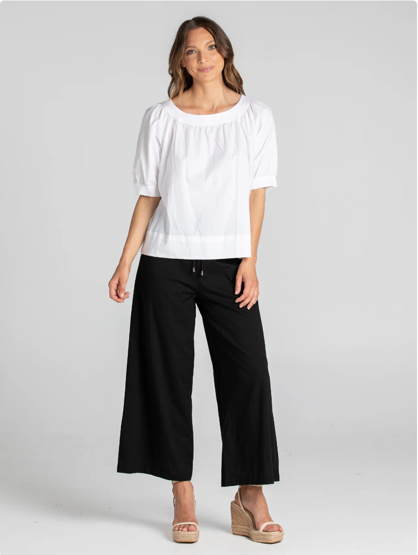 The Boom Shankar Bliss Top is a flowy and flattering summer top with a round neckline and elbow-length cuffed sleeves.
