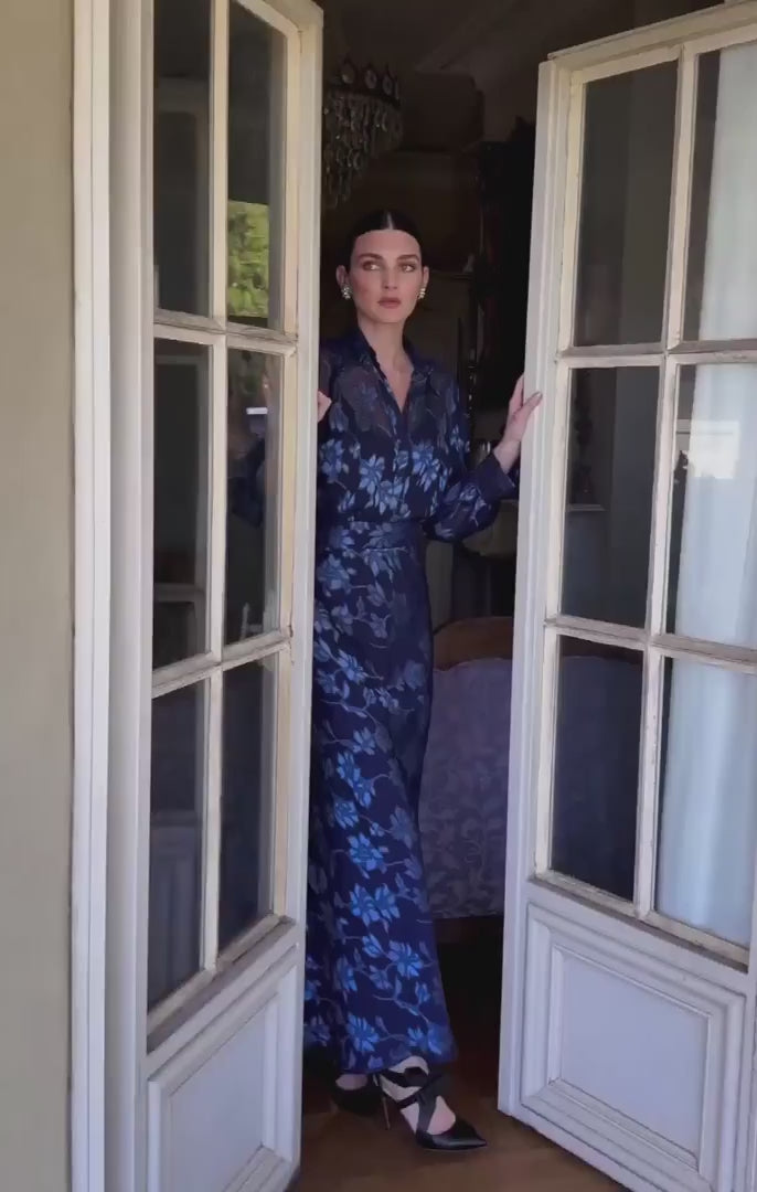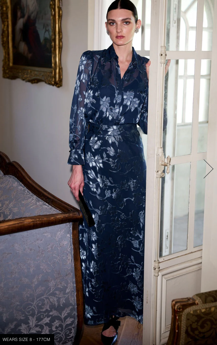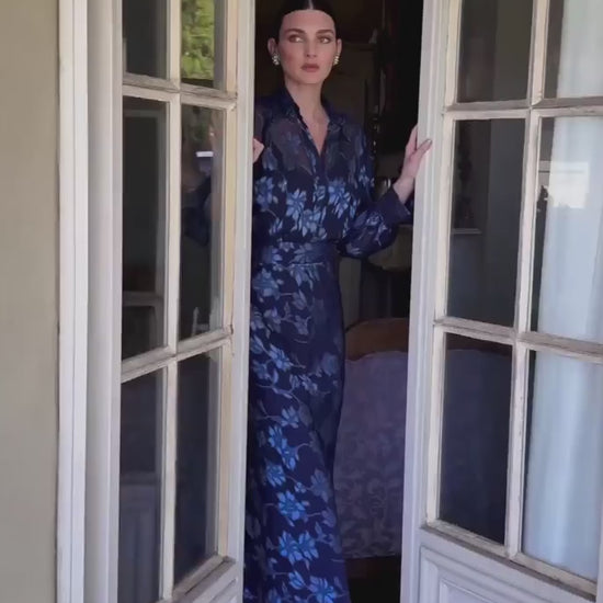 The Elphine Blouse is made from a lightweight satin chiffon fabric, featuring a loose-fit silhouette, long bloused sleeves, and an open V-neckline with collar and button fastening. Complete with a jersey cami under-slip, it can be worn tucked or loose for an effortlessly polished look, perfect for both work and events.