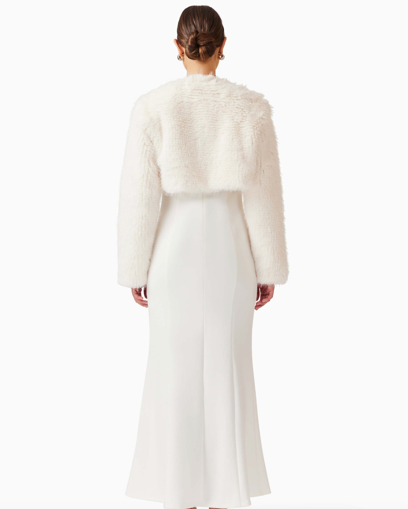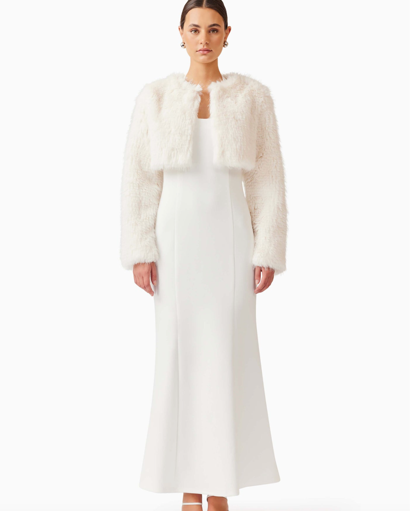 Perfect for adding a touch of refinement to your wardrobe, the Desiree Cropped Jacket in White is a versatile piece that can be worn year-round, transitioning from day to night with ease.