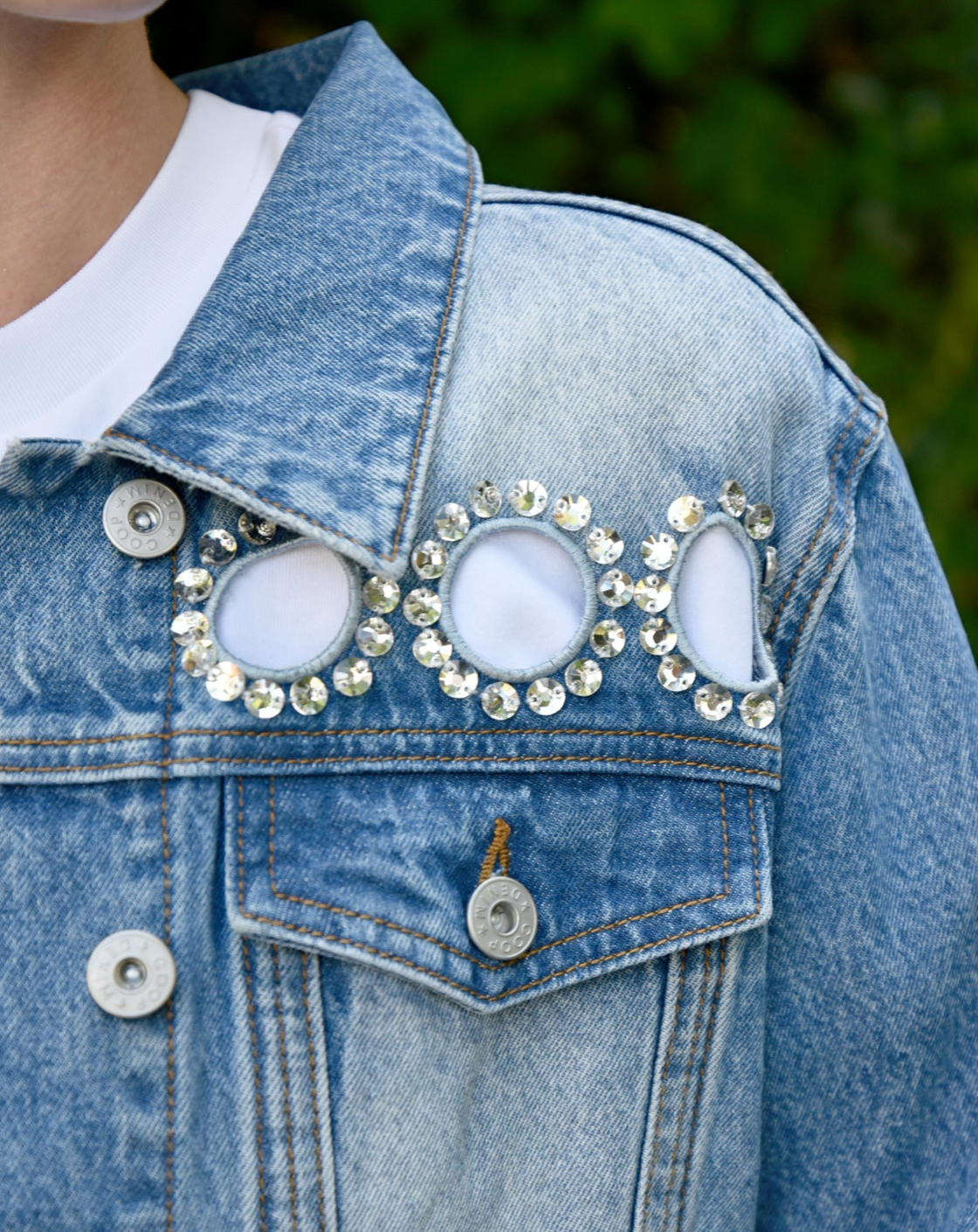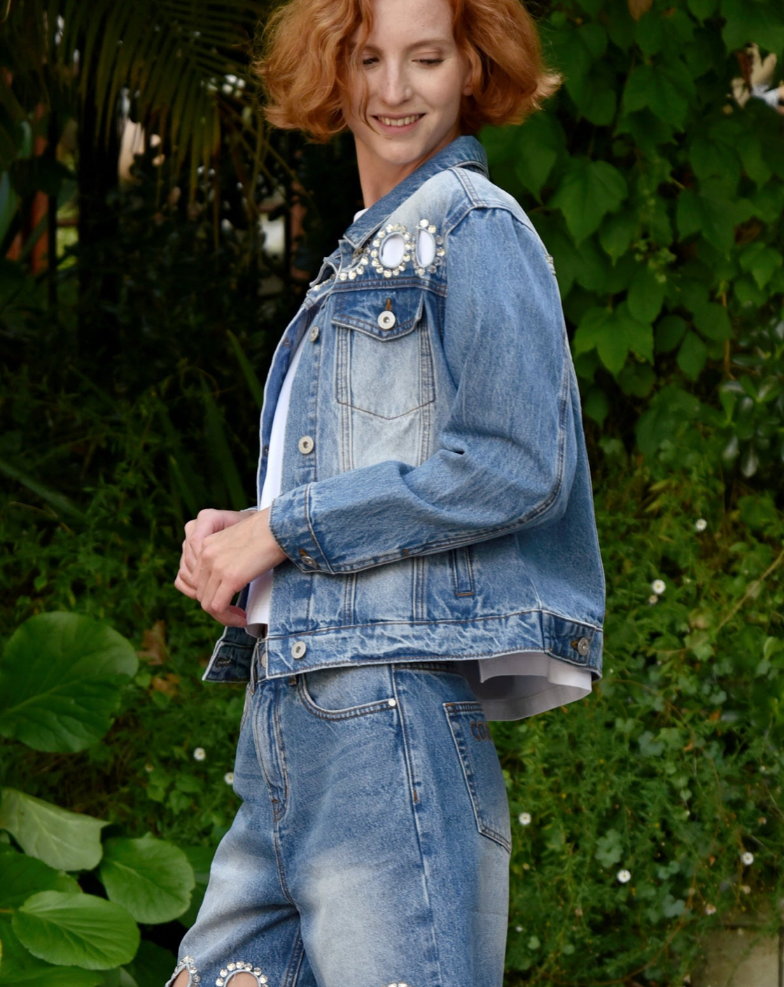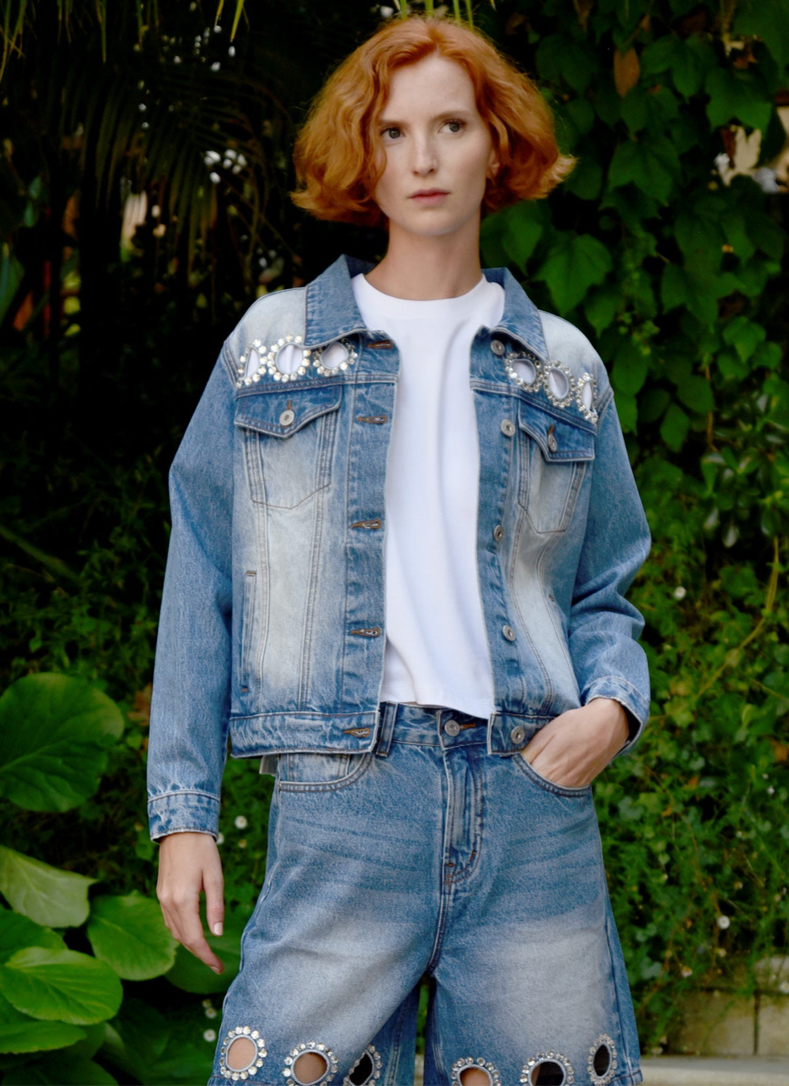 Intelligently designed to add some glamour to everyday dressing. Crafted in the sandblasted ‘Diamond Dust’ denim granting a lived in look, the glam-rock ‘Diamond Life’ jacket features traditional denim jacket traits with the added cut-out diamante detail. Pair with a plain white tee for an effortless cool-girl style.