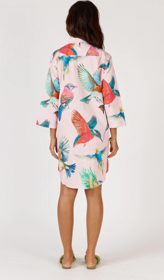 The Rubyyaya Warbler Shirtmaker blends timeless tailoring with effortless charm. Crafted from 100% cotton, this classic shirtmaker dress features a flattering curved hem, elegant ¾ sleeves, and eye-catching pearl and diamante buttons for a touch of sparkle. Designed in Australia and made in India, this versatile piece can be styled up or down for any occasion. Easy to wear and care for, it’s the perfect blend of comfort and sophistication.