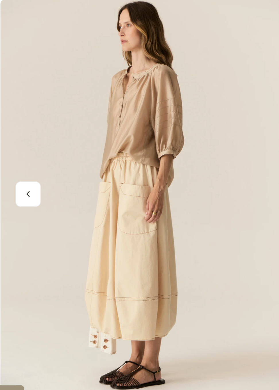 -Round neckline with scallop rick rack edge - tiny gathers under the neckline.
