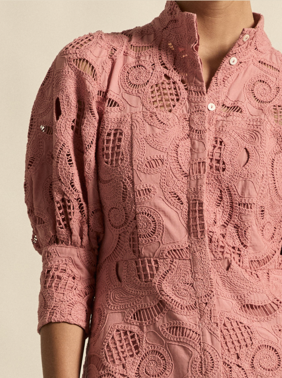- blouson sleeve creates soft volume at the elbow
