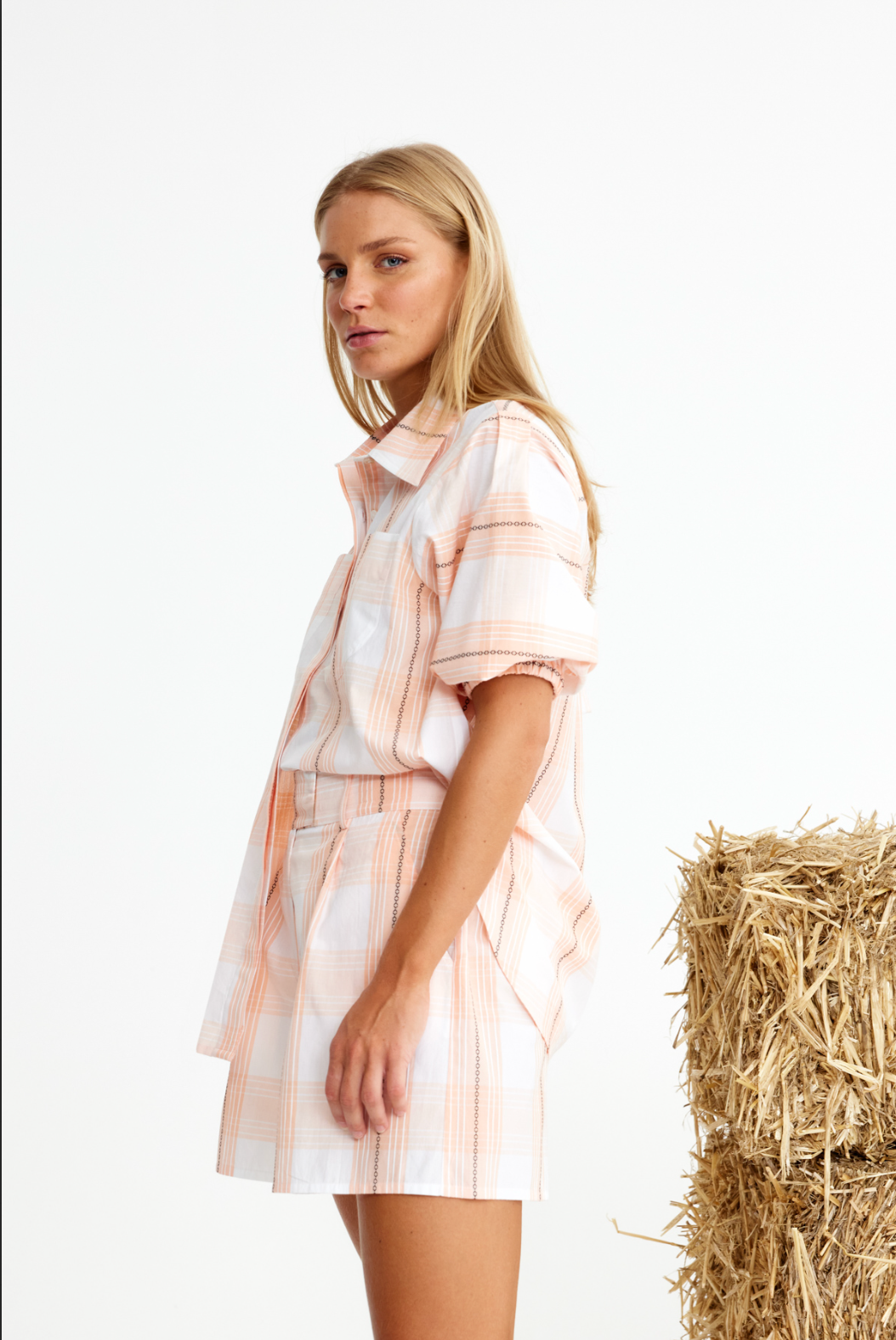 Jockey is built for a quick dash out the door - whether it’s to the stables or the supermarket. In crisp 100% cotton with a peach plaid that’s more chic than cheeky, these shorts balance tailoring with ease. They’ve got the agility to team with anything, but pair them with the matching blazer, you’re suddenly winning, black type, stakes placed.