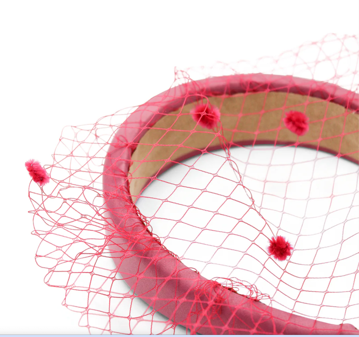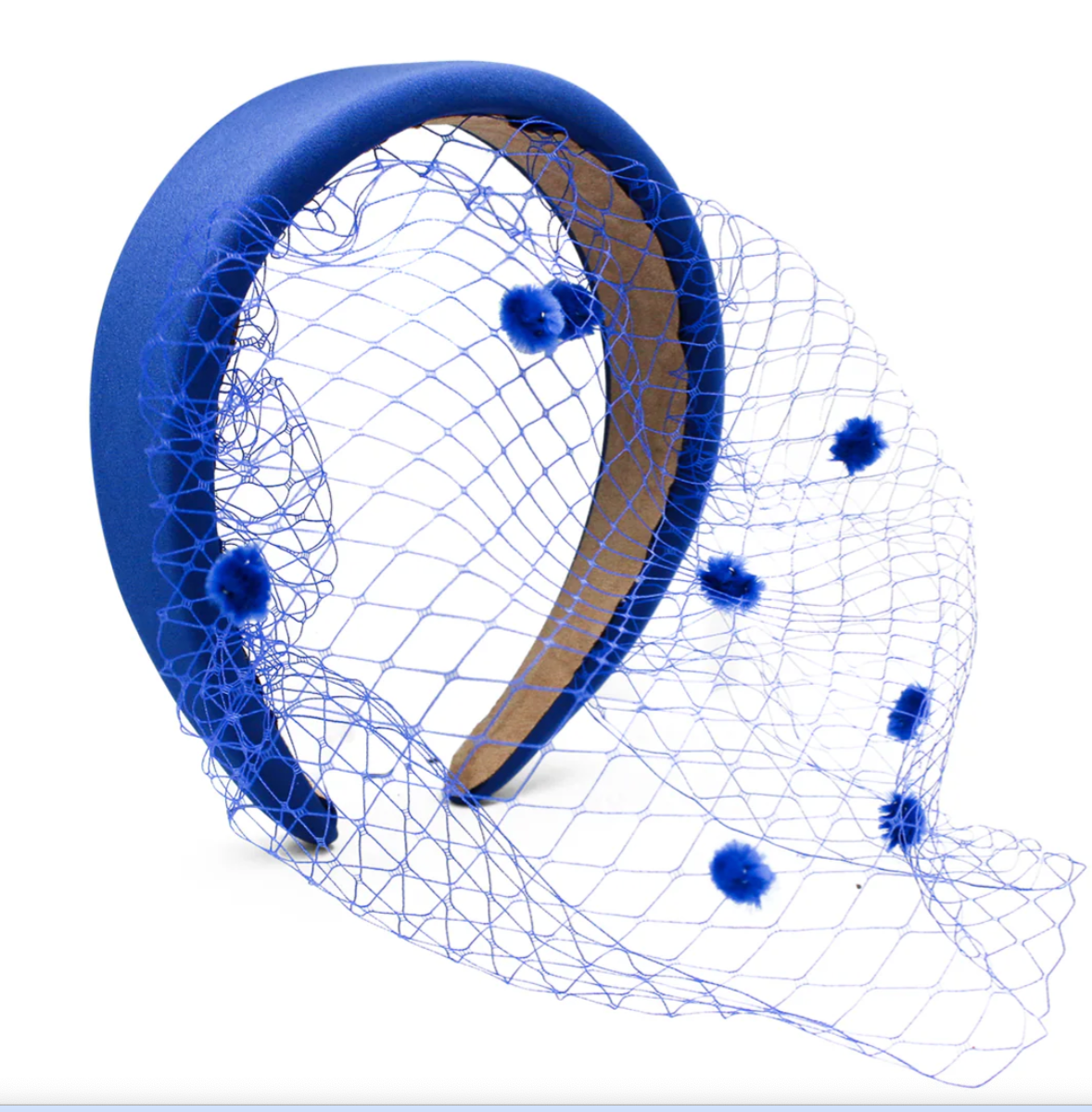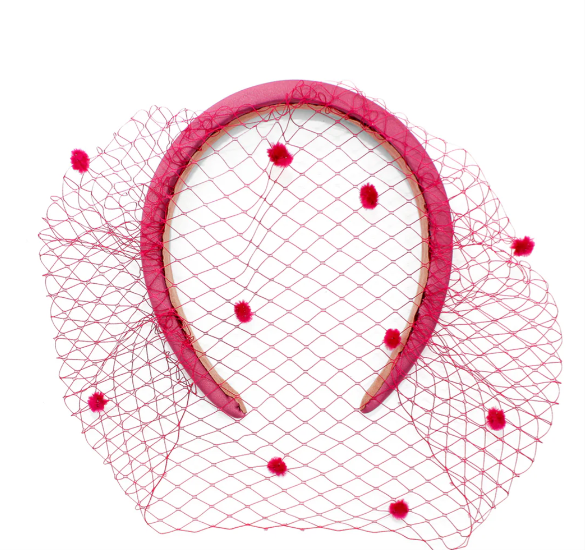 The Morgan & Taylor Lilah Veil Headband is a lace-draped veil with dot detailing across the front of the veil. Fitted on a soft satin headband for a playful and luxe look.