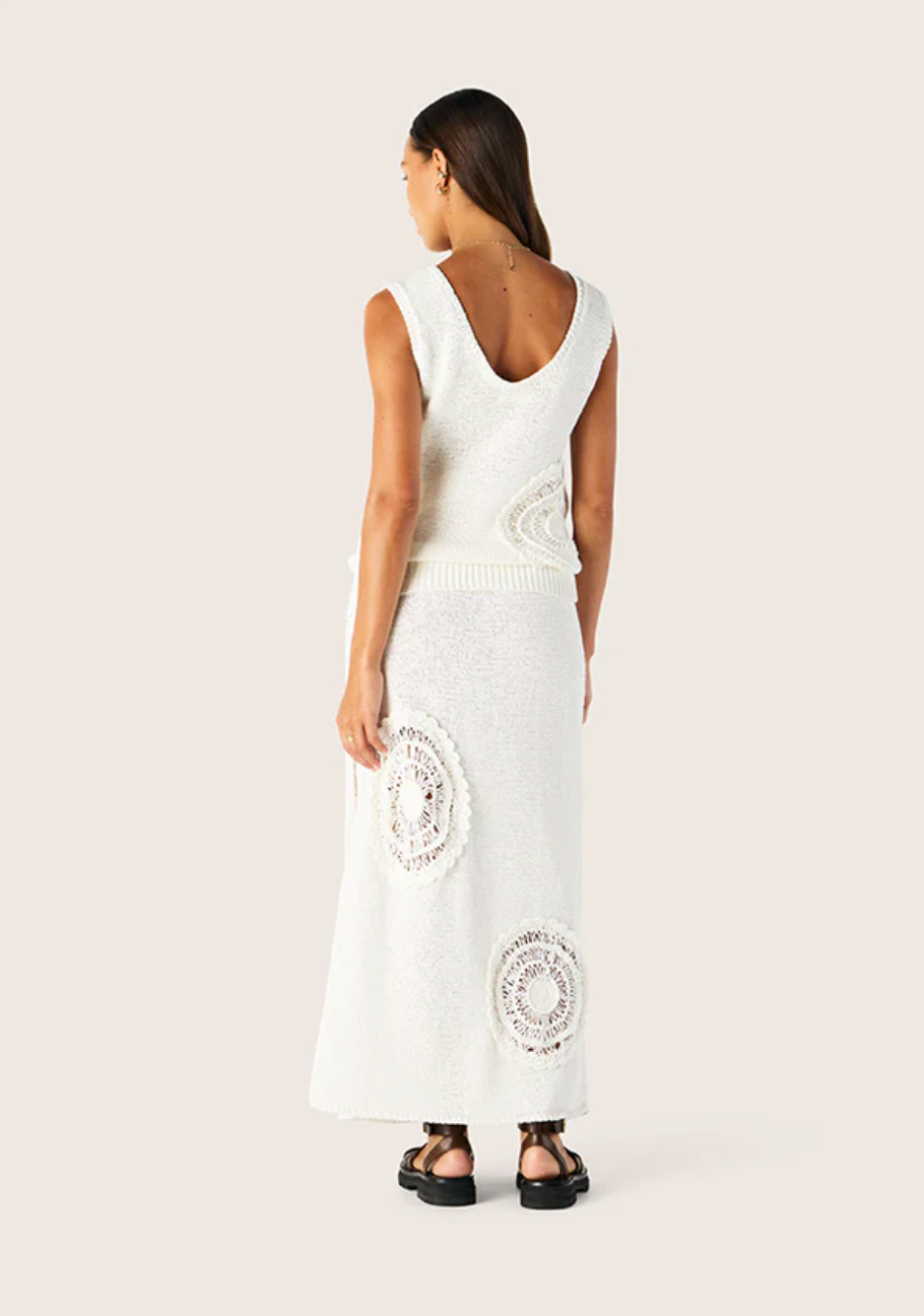 The Martina Knit Tank Top delivers elevated bohemian charm in a chalk hue. This relaxed silhouette is made from a cotton-blend knit and features tonal embroidered details. Style with tailored shorts and fluid skirts alike for versatile wear.