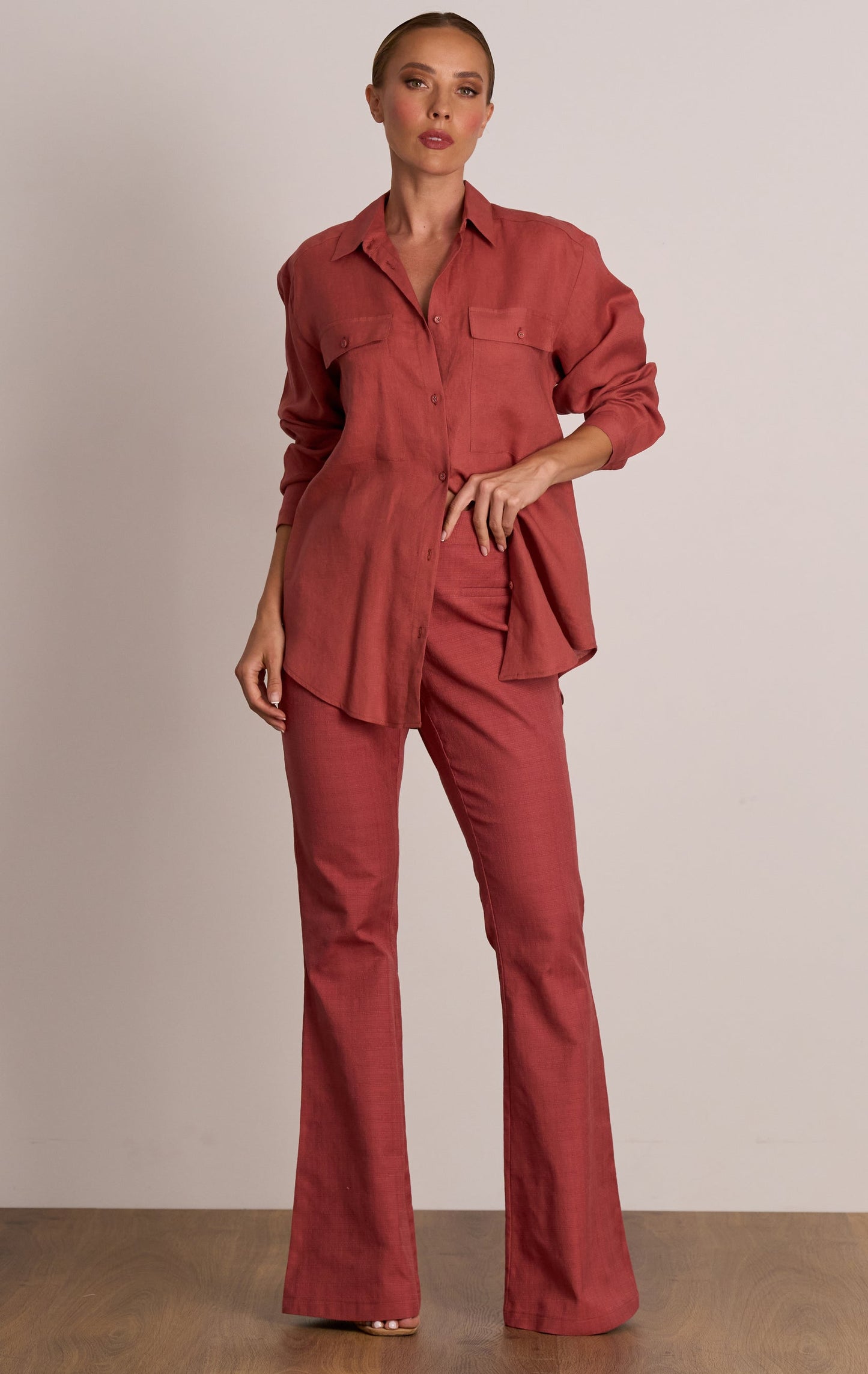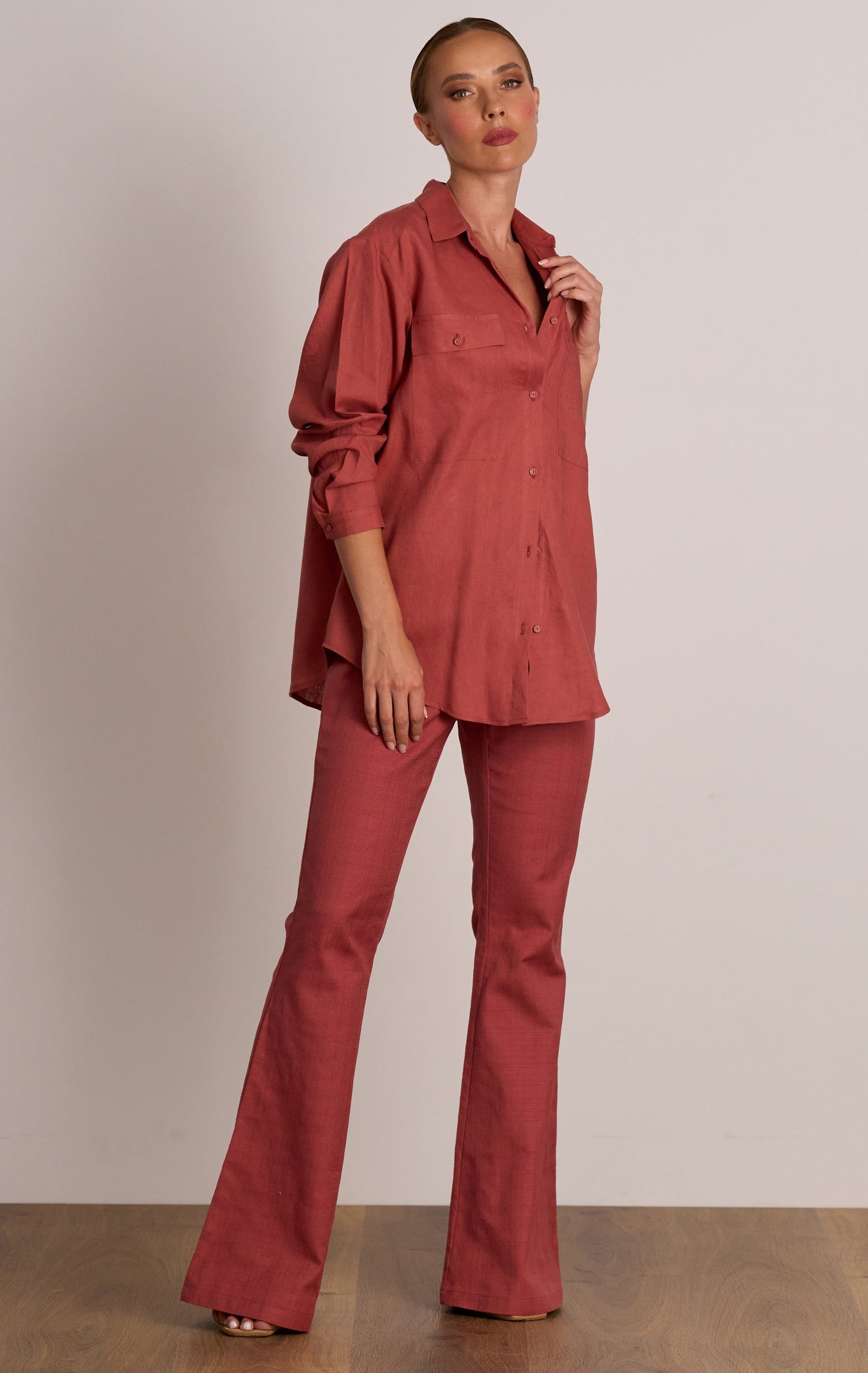 The Mercy Shirt by PASDUCHAS is made from a cotton linen blend. A relaxed cut featuring traditional collar balanced with the dropped sleeve to add an ease of fit. Classic button and button hole center front closure and cuff. Oversized patch pocket detail modernise the look for this season.