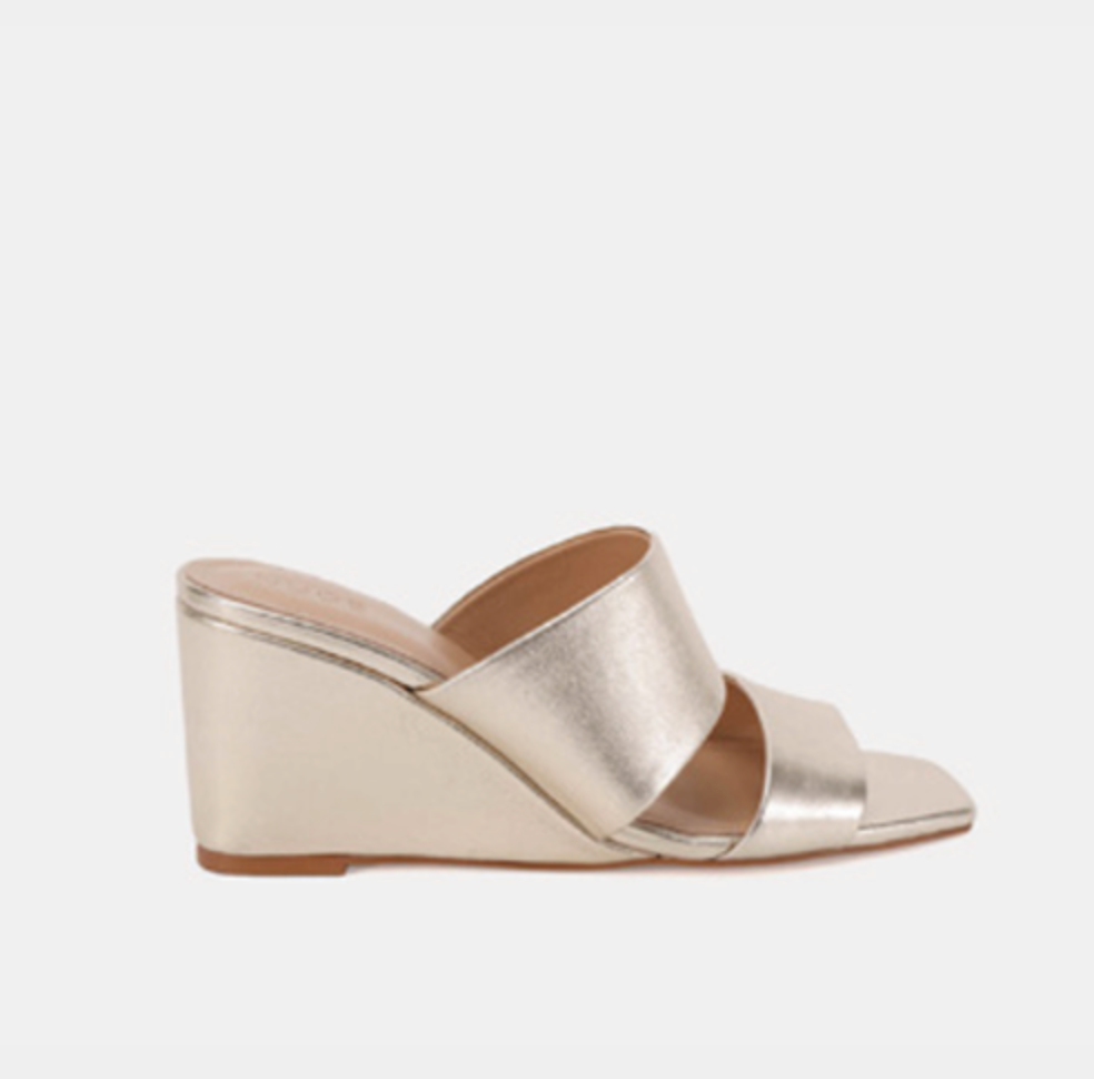 Vicki is a modern mule/wedge with timeless appeal. Featuring two soft upper front straps, Vicki adds a touch of elegance to any outfit. The block heel offers comfortable lift, while the slide provides an easy wear and flattering fit.