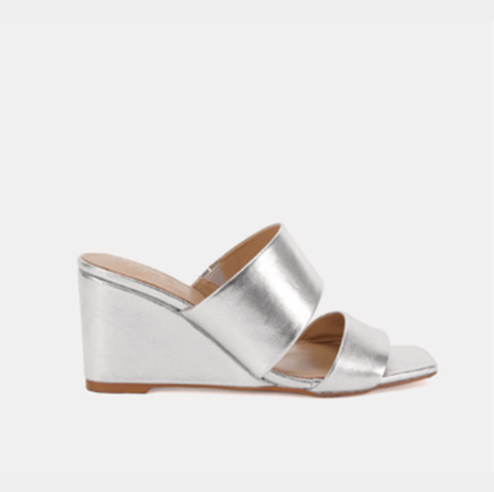 Vicki is a modern mule/wedge with timeless appeal. Featuring two soft upper front straps, Vicki adds a touch of elegance to any outfit. The block heel offers comfortable lift, while the slide provides an easy wear and flattering fit.