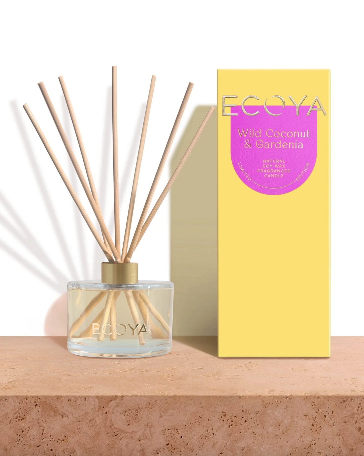 The Reed Diffuser is designed to fill your space with long-lasting fragrance. Housed in a glass vessel with a gold brushed collar, it features seven natural reeds and diffuses fragrance for up to six months.